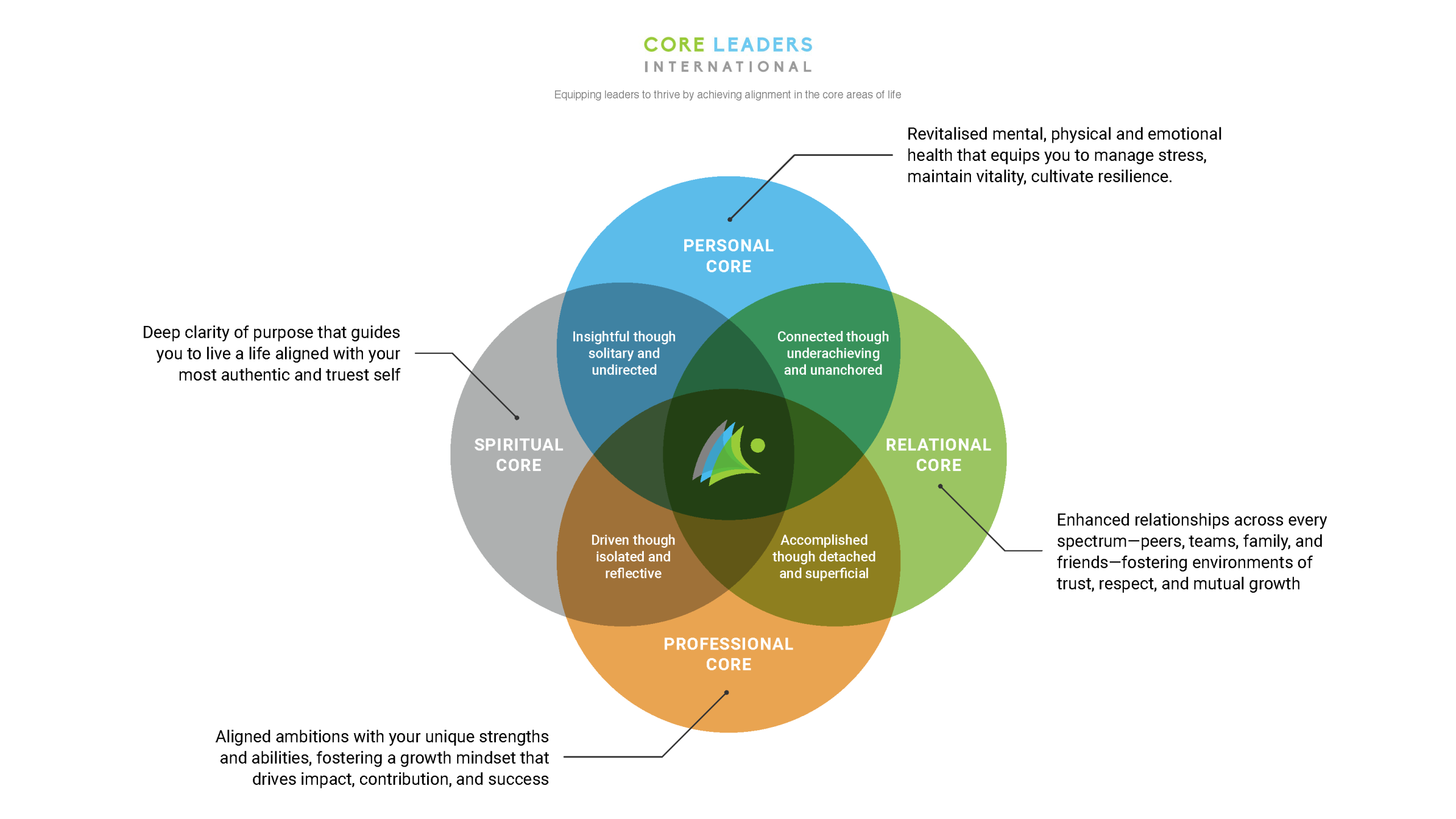 The CORE Leaders Academy (CLA) is a dynamic membership platform designed to equip both seasoned and emerging leaders to thrive by achieving alignment in four essential areas of life: personal, relational, professional, and spiritual.